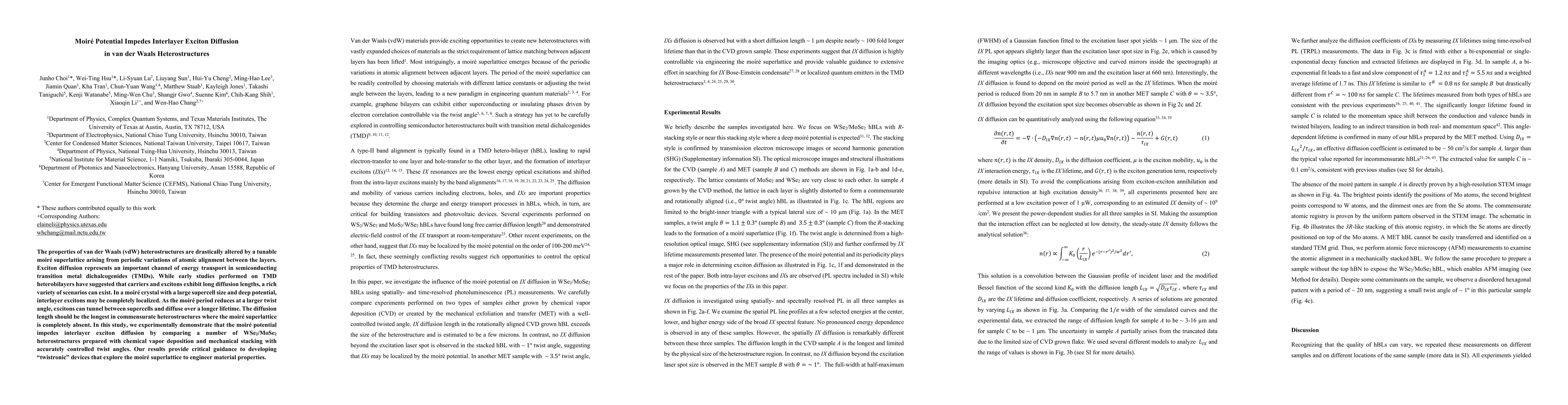 This research demonstrates that moiré potential in van der Waals heterostructures significantly impedes interlayer exciton diffusion, as shown through WSe2/MoSe2 samples with controlled twist angles. The findings provide crucial insights for designing twistronic devices leveraging moiré superlattices.