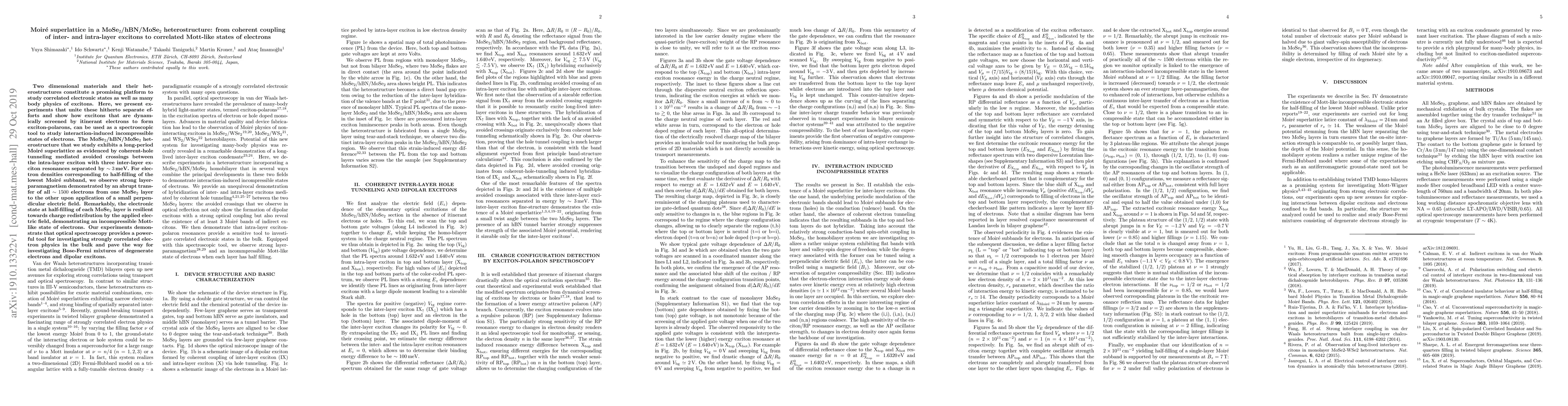 This paper investigates a Moir\'e superlattice in MoSe$_2$/hBN/MoSe$_2$ heterostructures, revealing coherent coupling between inter- and intra-layer excitons and demonstrating the formation of incompressible Mott-like states of electrons through optical spectroscopy. The study highlights the potential of such heterostructures for exploring correlated electronic states and many-body physics.