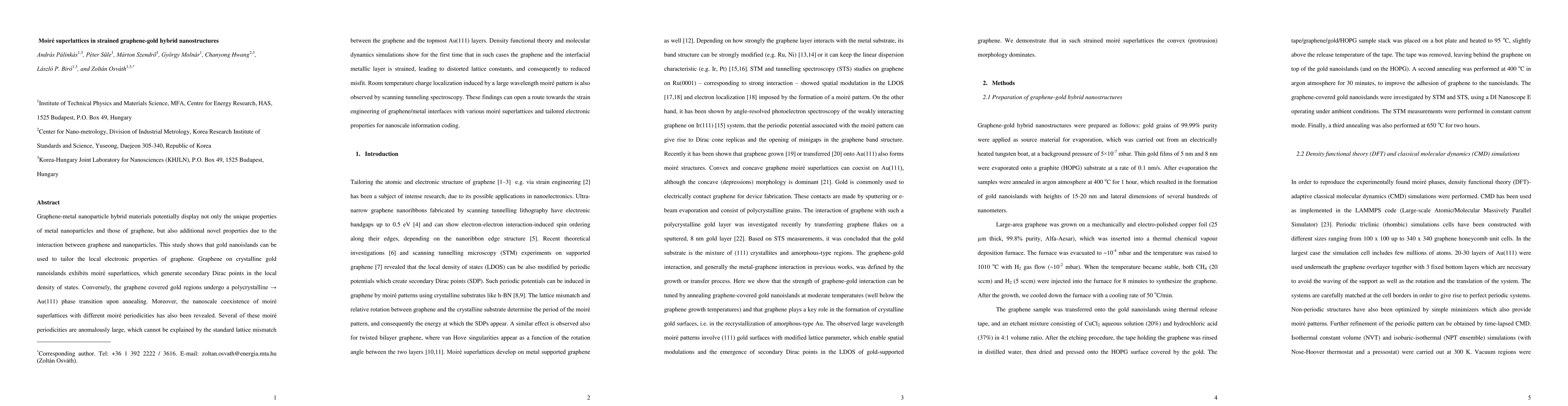 This paper investigates the formation of moiré superlattices in graphene-gold hybrid nanostructures, revealing novel electronic properties due to strain-induced lattice distortions. The study demonstrates the potential for tailoring local electronic properties and opens pathways for nanoscale information coding through engineered moiré patterns.