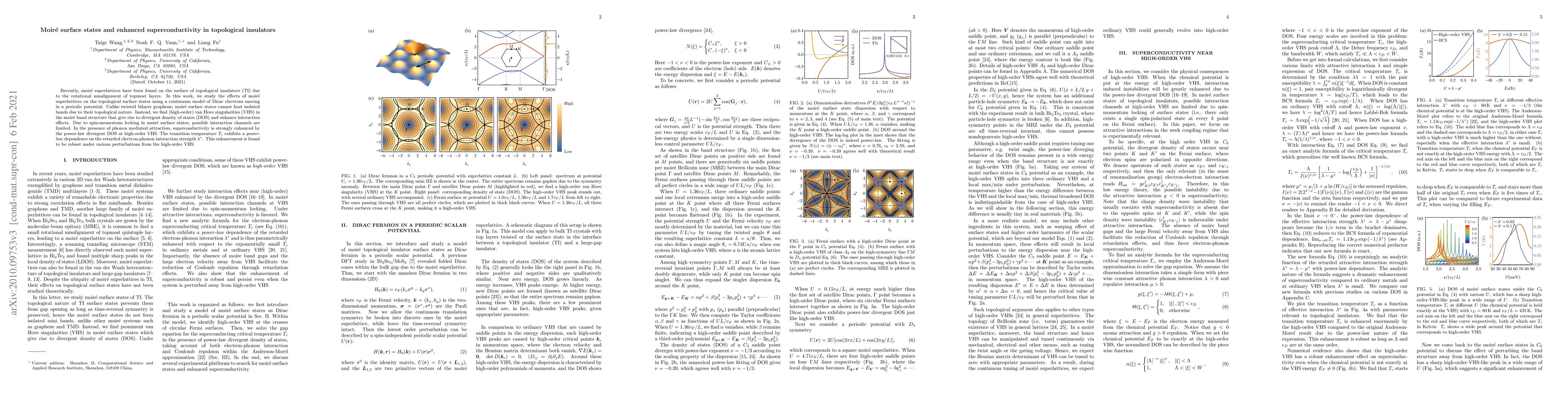 This paper investigates moiré superlattices on topological insulators, revealing high-order van Hove singularities that boost the density of states and interaction effects. Enhanced superconductivity arises due to phonon-mediated attraction, with transition temperature $T_c$ showing a power-law dependence on electron-phonon interaction strength $\lambda^*$.