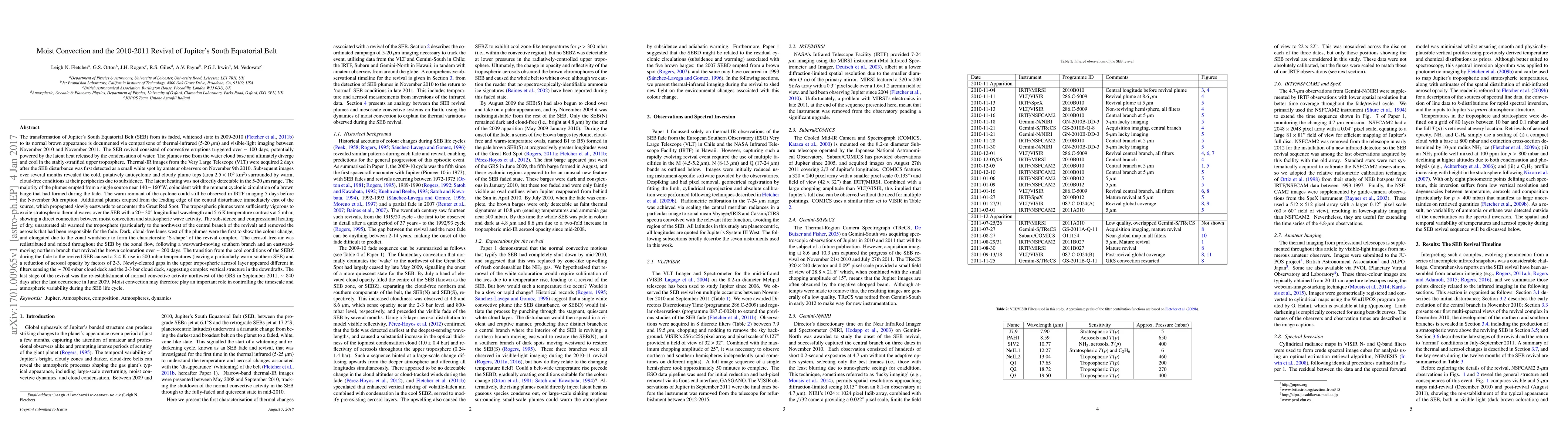 Jupiter's South Equatorial Belt revived after 100-day convective eruptions, likely powered by water condensation, with stratospheric waves linked to tropospheric moist convection.