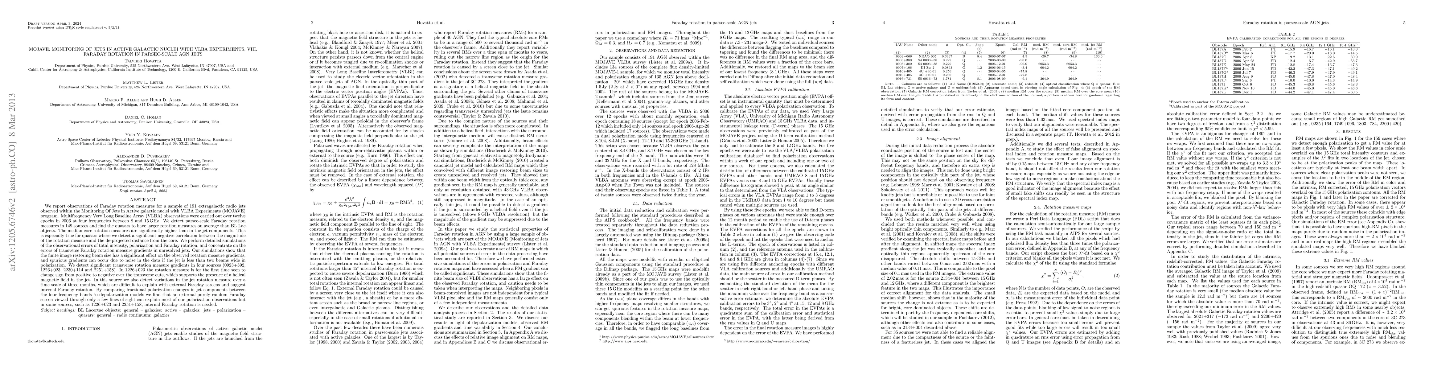 This study reports on Faraday rotation measures in 191 extragalactic radio jets, finding quasars exhibit larger average RMs than BL Lac objects. Significant transverse RM gradients and variations in some jets suggest internal Faraday rotation and helical magnetic fields.