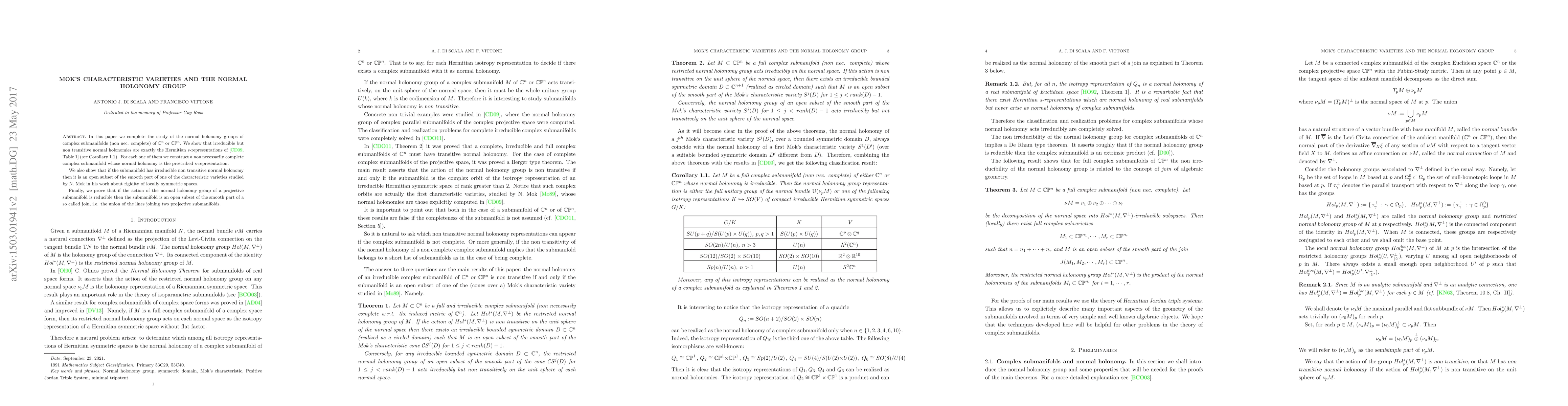In this paper we complete the study of the normal holonomy groups of complex submanifolds (non nec. complete) of Cn or CPn. We show that irreducible but non transitive normal holonomies are exactly the Hermitian s-representations of [CD09, Table 1] (see Corollary 1.1). For each one of them we construct a non necessarily complete complex submanifold whose normal holonomy is the prescribed s-representation. We also show that if the submanifold has irreducible non transitive normal holonomy then it is an open subset of the smooth part of one of the characteristic varieties studied by N. Mok in his work about rigidity of locally symmetric spaces. Finally, we prove that if the action of the normal holonomy group of a projective submanifold is reducible then the submanifold is an open subset of the smooth part of a so called join, i.e. the union of the lines joining two projective submanifolds.