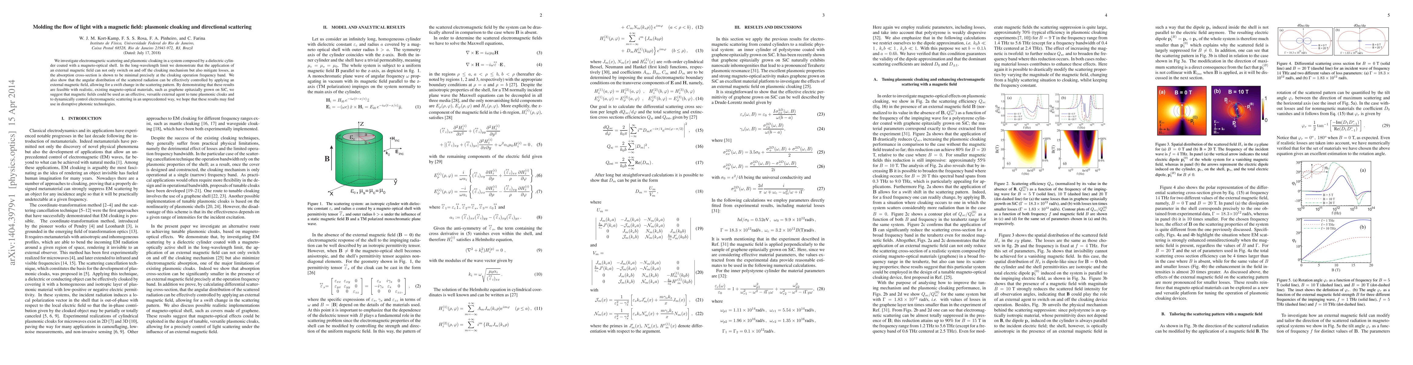 We investigate electromagnetic scattering and plasmonic cloaking in a system composed by a dielectric cylinder coated with a magneto-optical shell. In the long-wavelength limit we demonstrate that the application of an external magnetic field can not only switch on and off the cloaking mechanism but also mitigate losses, as the absorption cross-section is shown to be minimal precisely at the cloaking operation frequency band. We also show that the angular distribution of the scattered radiation can be effectively controlled by applying an external magnetic field, allowing for a swift change in the scattering pattern. By demonstrating that these results are feasible with realistic, existing magneto-optical materials, such as graphene epitaxially grown on SiC, we suggest that magnetic fields could be used as an effective, versatile external agent to tune plasmonic cloaks and to dynamically control electromagnetic scattering in an unprecedented way, we hope that these results may find use in disruptive photonic technologies.