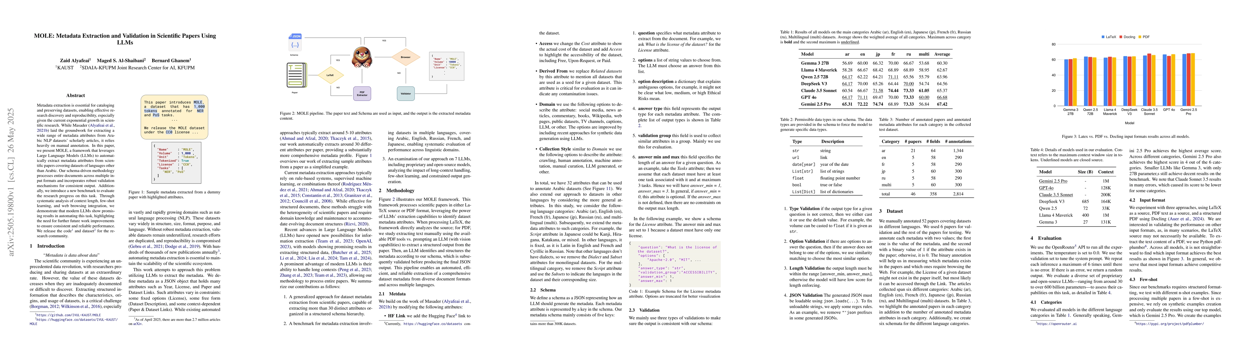 Unlike previous manual annotation-reliant methods, MOLE automates metadata extraction from diverse scientific papers, introducing a new benchmark for evaluating progress in this domain.