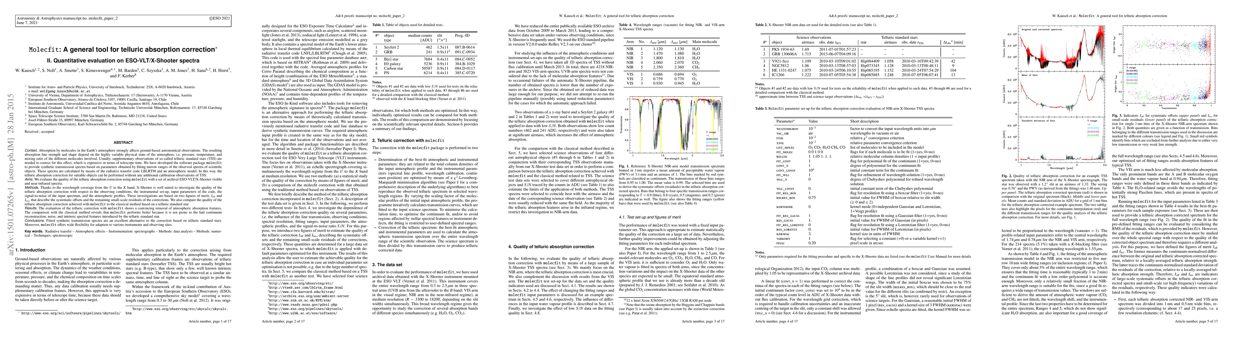 The paper evaluates the effectiveness of the molecfit software for telluric absorption correction on ESO-VLT X-Shooter spectra, comparing its results to traditional methods using telluric standard stars. The study assesses the tool's performance based on systematic offsets and residual errors across various observing conditions and instrumental setups.