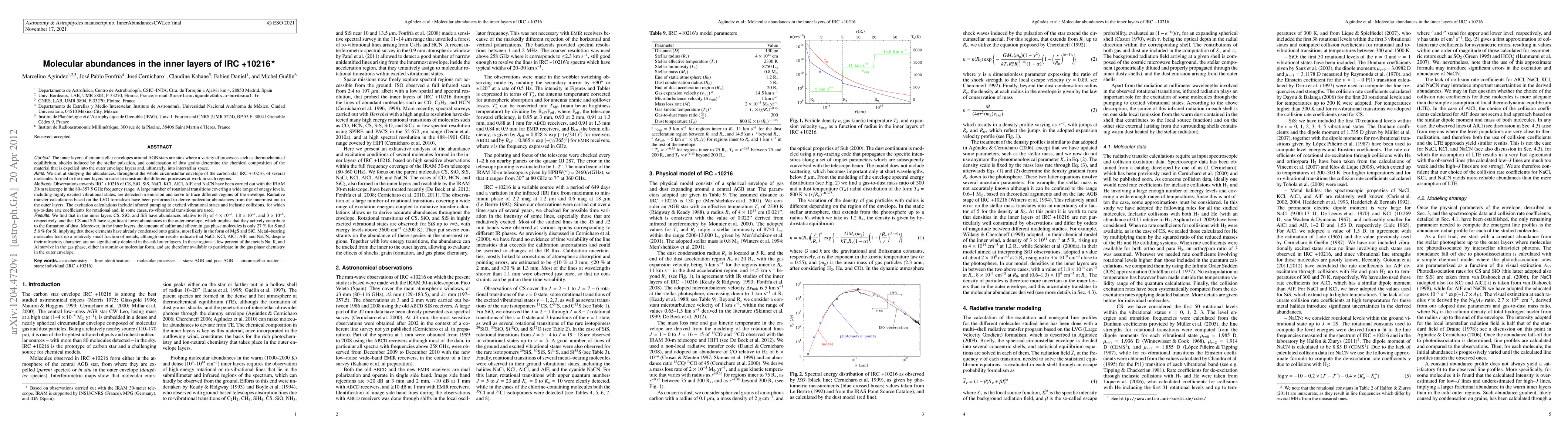 The study observes molecular abundances in the inner layers of the IRC +10216 star using the IRAM 30-m telescope, detecting various molecules including CS, SiO, SiS, NaCl, KCl, AlCl, AlF, and NaCN. Through radiative transfer calculations, it finds that CS, SiO, and SiS have specific abundances relative to H2, with significant depletion in the outer envelope, indicating their role in dust formation. Inner layers show only 27% sulfur and 5.6% silicon in gas phase, suggesting early condensation onto grains as MgS and SiC. Despite their refractory nature, NaCl, KCl, AlCl, AlF, and NaCN remain in the gas phase in the cold outer layers, retaining a few percent of metals Na, K, and Al for gas-phase chemistry.