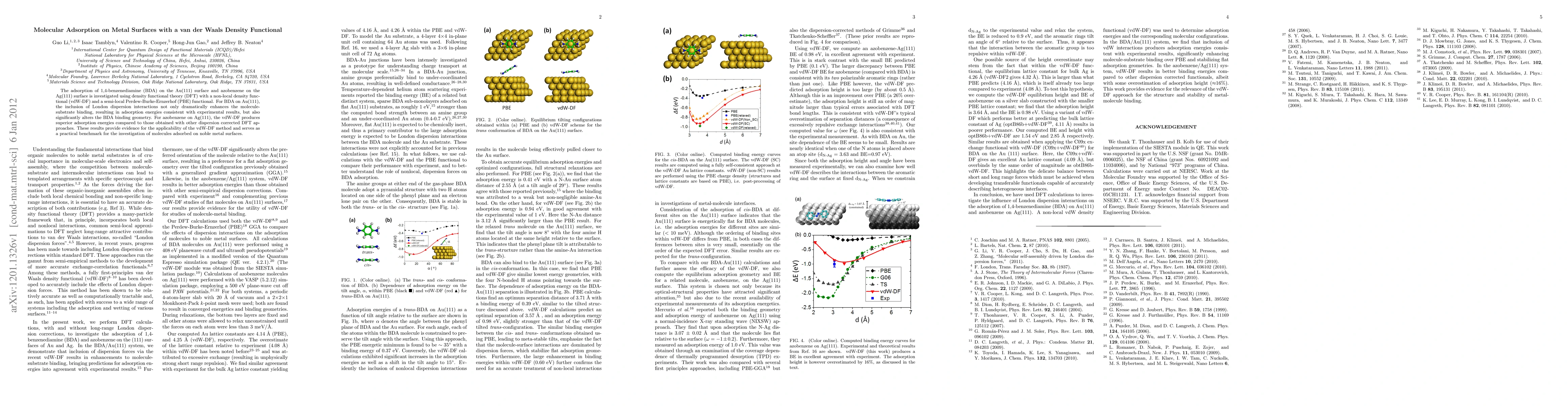 This study investigates the adsorption of 1,4-benzenediamine on Au(111) and azobenzene on Ag(111) using DFT with vdW-DF and PBE functionals, revealing that vdW-DF significantly improves binding energies and geometries, providing a benchmark for noble metal surface adsorption studies.