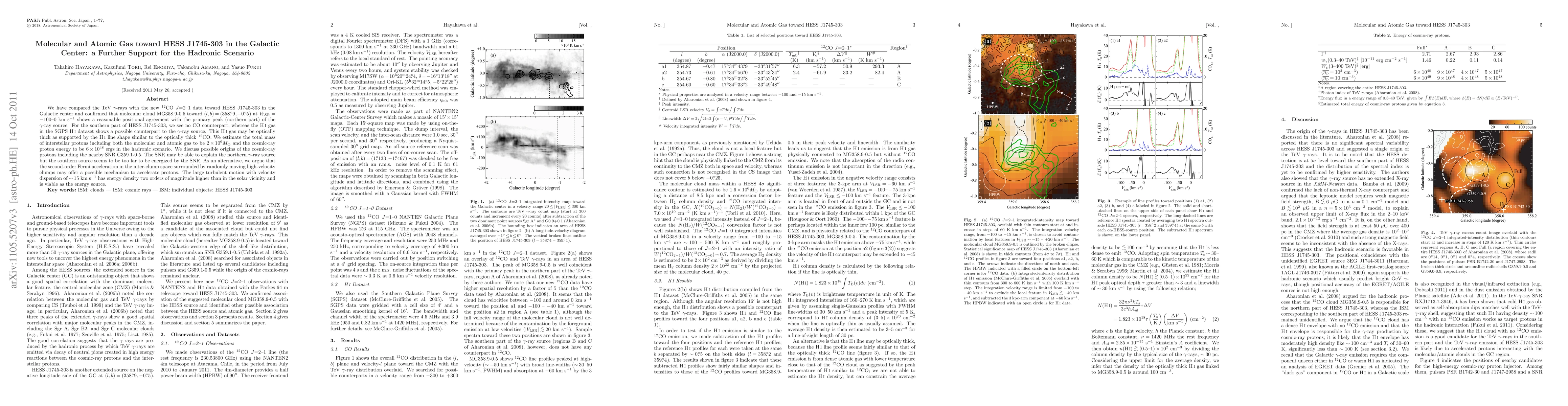 This study correlates TeV gamma-rays from HESS J1745-303 with molecular and atomic gas data, supporting the hadronic scenario. The northern gamma-ray peak aligns with molecular gas MG358.9-0.5, while atomic HI gas may correspond to the southern peak, suggesting a total mass of 2x10^6 Mo for interstellar protons and 6x10^{48} ergs for cosmic-ray energy.