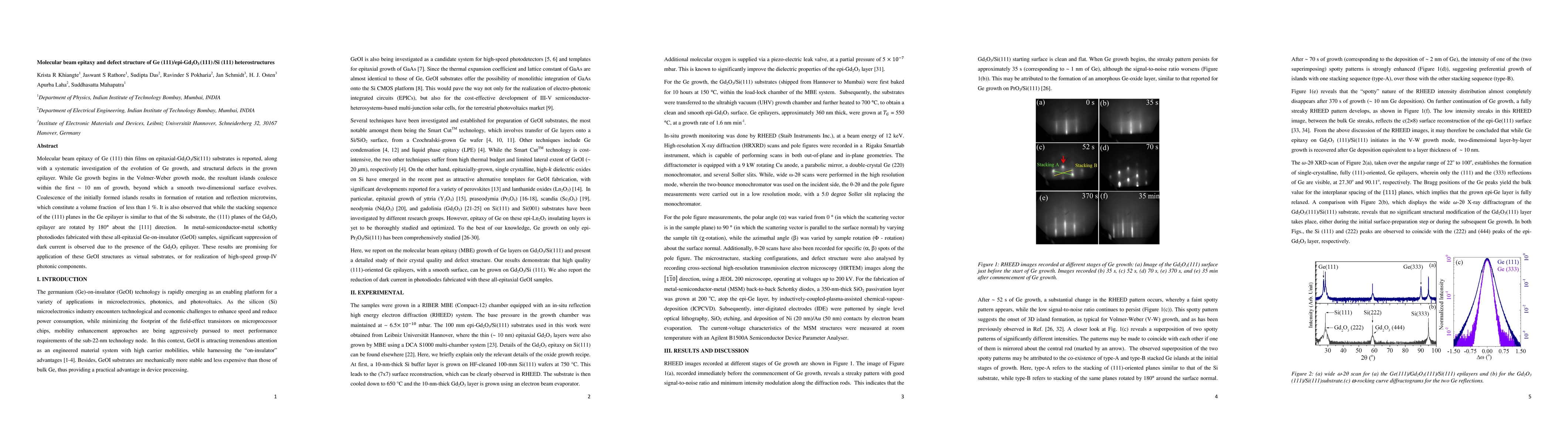 The paper presents a detailed analysis of Ge (111) epitaxial growth on epi-Gd2O3 (111)/Si (111) substrates, including defect structure characterization and implications for photonic devices.