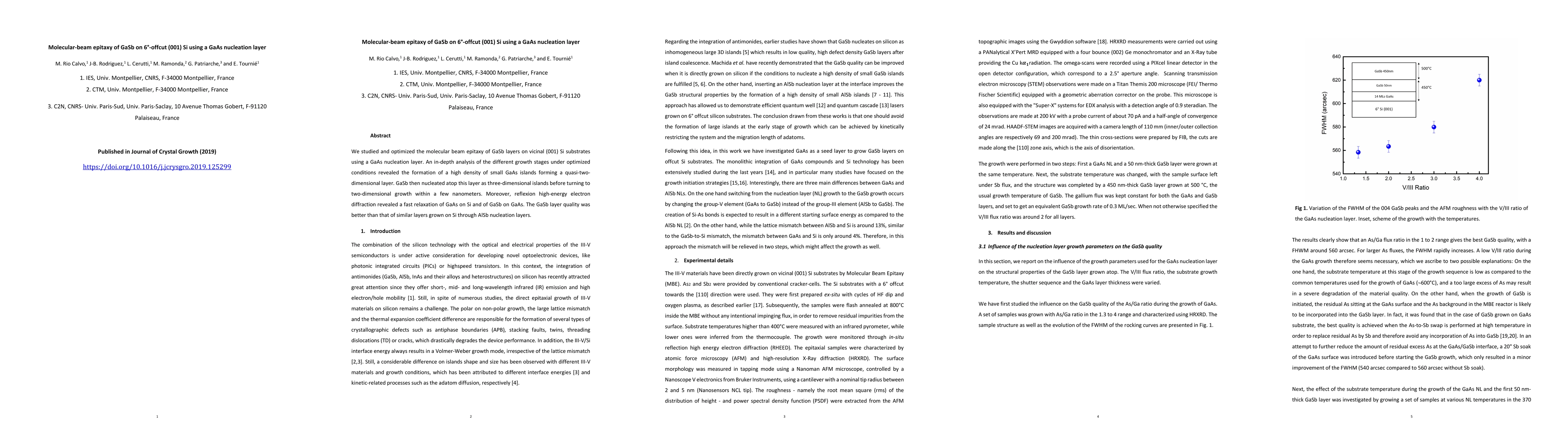 Researchers developed a method to grow high-quality GaSb layers on Si substrates using a GaAs nucleation layer, achieving better quality than traditional methods, and enabling the growth of quasi-two-dimensional layers.