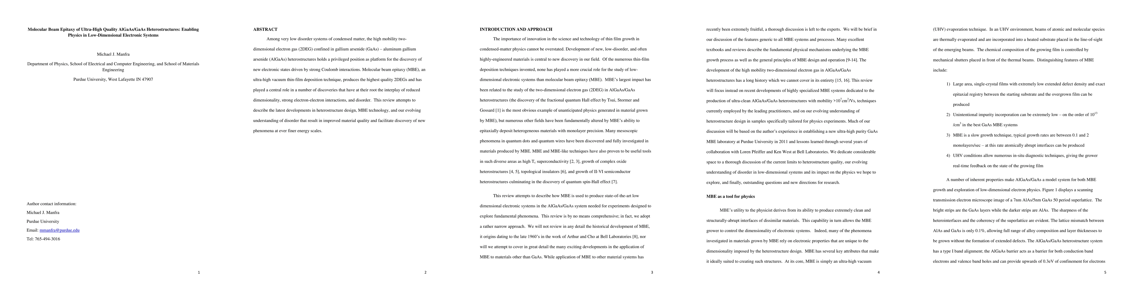 This paper reviews advancements in molecular beam epitaxy for creating ultra-high quality AlGaAs/GaAs heterostructures, emphasizing the role of high mobility two-dimensional electron gases in discovering new electronic states driven by strong Coulomb interactions. It highlights recent developments in heterostructure design and MBE technology that enhance material quality and enable the discovery of novel phenomena.