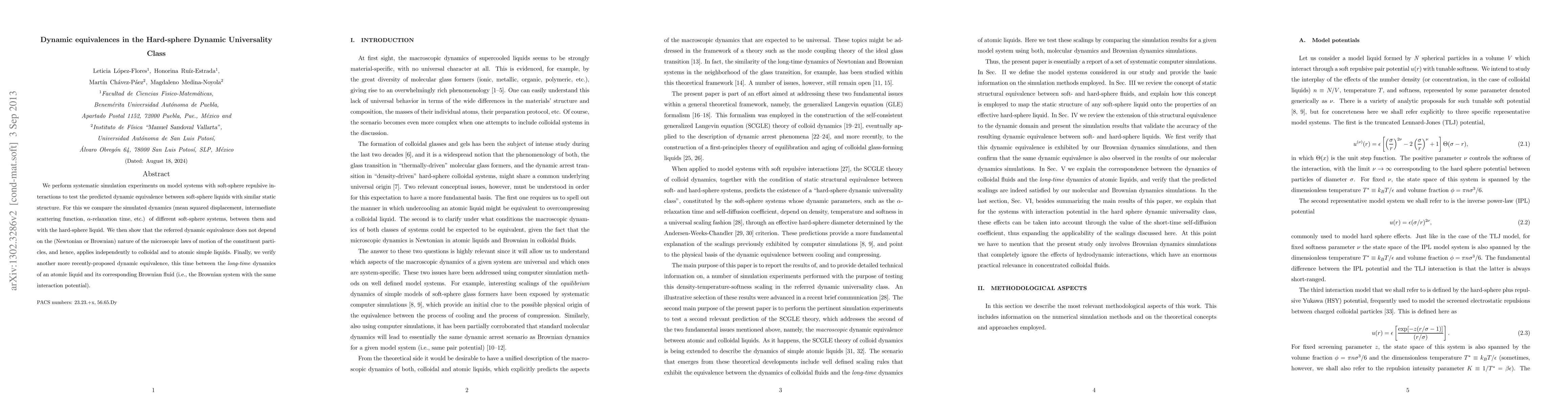Researchers tested dynamic behavior of soft-sphere liquids against hard-sphere liquid, finding equivalence in certain dynamics; they also verified equivalence between Brownian fluid and atomic simple liquid.