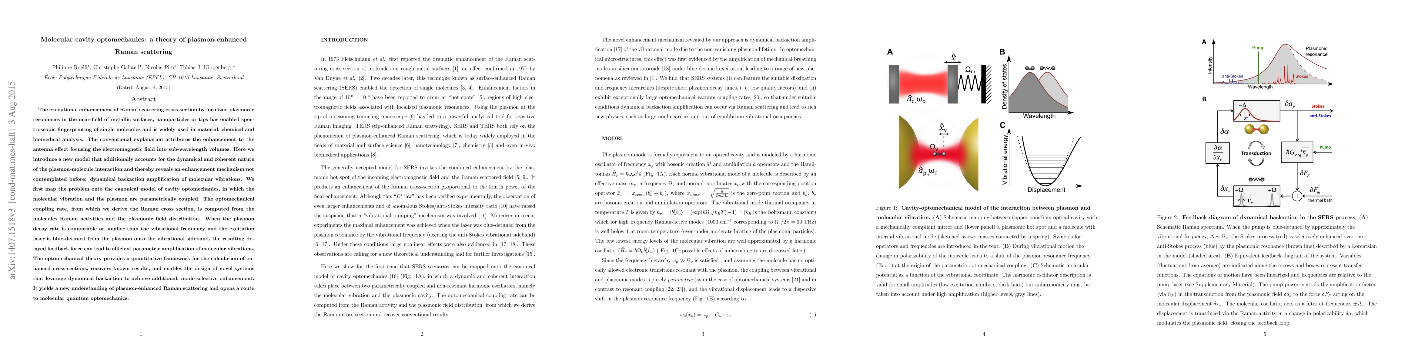This paper proposes a new optomechanical theory for plasmon-enhanced Raman scattering, showing that dynamic backaction amplification of molecular vibrations can significantly enhance scattering beyond conventional antenna effects. The theory quantitatively calculates enhanced cross-sections and suggests designing systems for mode-selective enhancement.