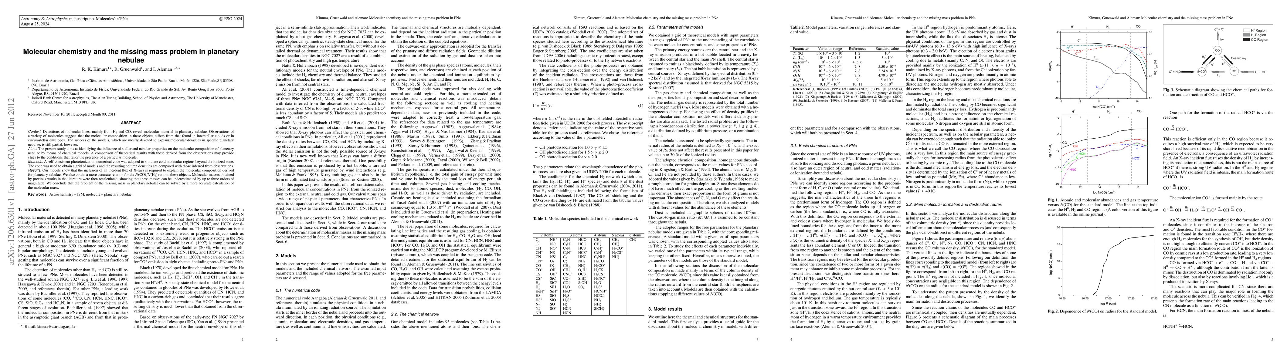 Detections of molecular lines, mainly from H2$ and CO, reveal molecular material in planetary nebulae. Observations of a variety of molecules suggest that the molecular composition in these objects differs from that found in interstellar clouds or in circumstellar envelopes. The success of the models, which are mostly devoted to explain molecular densities in specific planetary nebulae, is still partial, however. The present study aims at identifying the influence of stellar and nebular properties on the molecular composition of planetary nebulae by means of chemical models. A comparison of theoretical results with those derived from the observations may provide clues to the conditions that favor the presence of a particular molecule. A self-consistent photoionization numerical code was adapted to simulate cold molecular regions beyond the ionized zone. The code was used to obtain a grid of models and the resulting column densities are compared with those inferred from observations. Our models show that the inclusion of an incident flux of X-rays is required to explain the molecular composition derived for planetary nebulae. We also obtain a more accurate relation for the N(CO)/N(H2) ratio in these objects. Molecular masses obtained by previous works in the literature were then recalculated, showing that these masses can be underestimated by up to three orders of magnitude. We conclude that the problem of the missing mass in planetary nebulae can be solved by a more accurate calculation of the molecular mass.