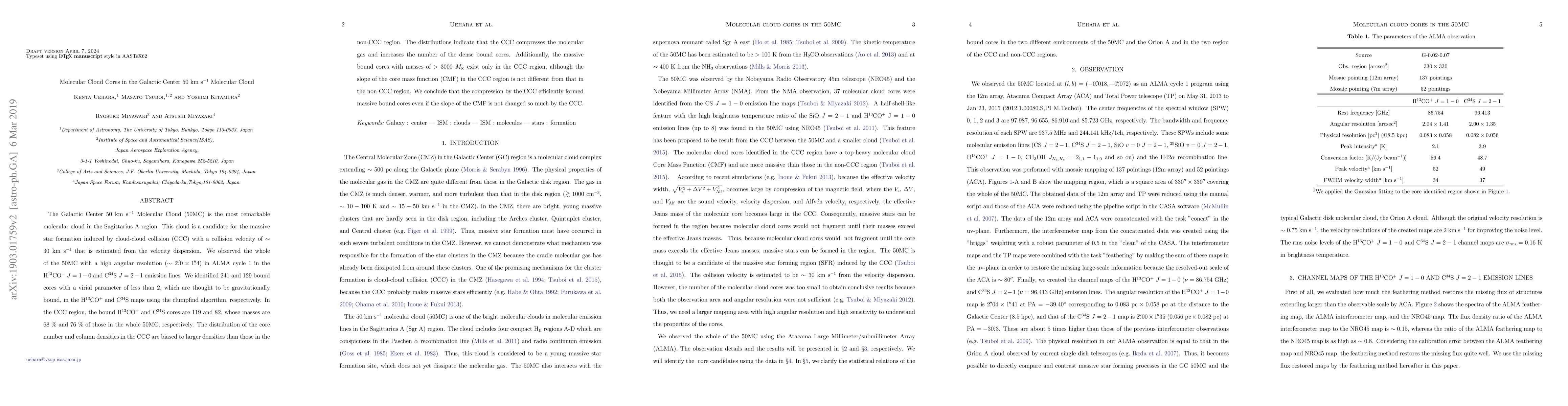 The Galactic Center 50 km s$^{-1}$ Molecular Cloud (50MC) is a site of potential massive star formation due to cloud-cloud collisions (CCC). ALMA observations identified 241 gravitationally bound cores in the H$^{13}$CO$^+$ emission, with 119 in the CCC region, indicating that CCC compresses gas and increases the number of dense cores, including massive cores >3000 $M_{\odot}$.