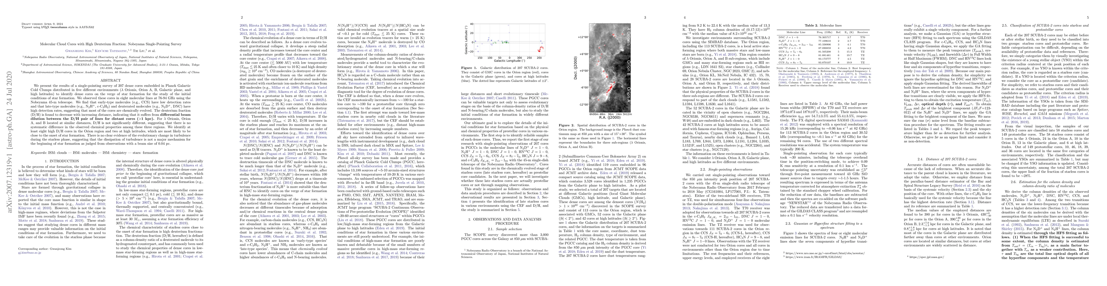 This study investigates 207 dense molecular cloud cores using the Nobeyama 45-m telescope, finding high detection rates of late-type and deuterated molecules, indicating chemical evolution. The deuterium fraction decreases with distance, suggesting beam dilution affects distant cores.
