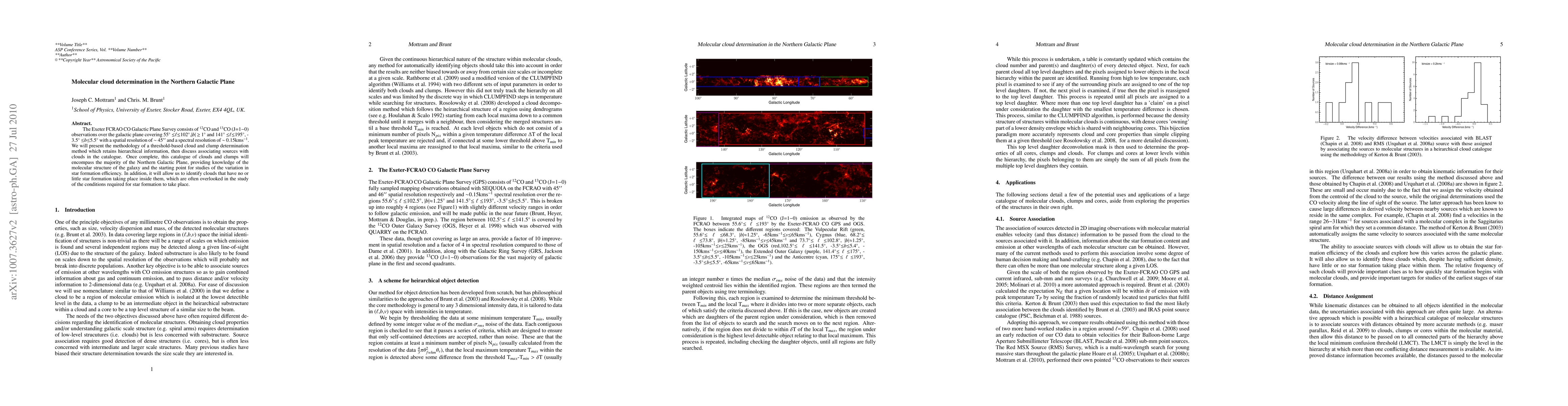 The Exeter FCRAO CO Galactic Plane Survey consists of 12CO and 13CO (J=1-0) observations over the galactic plane covering 55 degrees <= l <= 102 degrees, |b| >= 1 degree and 141 degrees <= l <= 195 degrees, -3.5 degrees <= b <= 5.5 degrees with a spatial resolution of ~45" and a spectral resolution of ~0.15km/s. We will present the methodology of a threshold-based cloud and clump determination method which retains hierarchical information, then discuss associating sources with clouds in the catalogue. Once complete, this catalogue of clouds and clumps will encompass the majority of the Northern Galactic Plane, providing knowledge of the molecular structure of the galaxy and the starting point for studies of the variation in star formation efficiency. In addition, it will allow us to identify clouds that have no or little star formation taking place inside them, which are often overlooked in the study of the conditions required for star formation to take place.