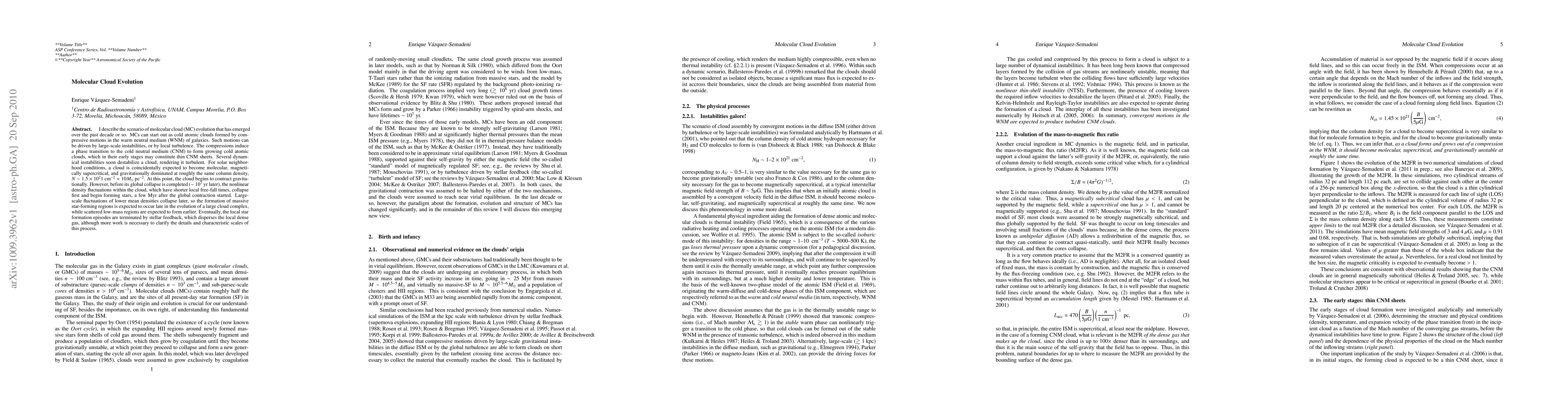I describe the scenario of molecular cloud (MC) evolution that has emerged over the past decade or so. MCs can start out as cold atomic clouds formed by compressive motions in the warm neutral medium (WNM) of galaxies. Such motions can be driven by large-scale instabilities, or by local turbulence. The compressions induce a phase transition to the cold neutral medium (CNM) to form growing cold atomic clouds, which in their early stages may constitute thin CNM sheets. Several dynamical instabilities soon destabilize a cloud, rendering it turbulent. For solar neighborhood conditions, a cloud is coincidentally expected to become molecular, magnetically supercritical, and gravitationally dominated at roughly the same column density, $N \sim 1.5 \times 10^21 \psc \approx 10 \Msun$ pc$^{-2}$. At this point, the cloud begins to contract gravitationally. However, before its global collapse is completed ($\sim 10^7$ yr later), the nonlinear density fluctuations within the cloud, which have shorter local free-fall times, collapse first and begin forming stars, a few Myr after the global contraction started. Large-scale fluctuations of lower mean densities collapse later, so the formation of massive star-forming regions is expected to occur late in the evolution of a large cloud complex, while scattered low-mass regions are expected to form earlier. Eventually, the local star formation episodes are terminated by stellar feedback, which disperses the local dense gas, although more work is necessary to clarify the details and characteristic scales of this process.