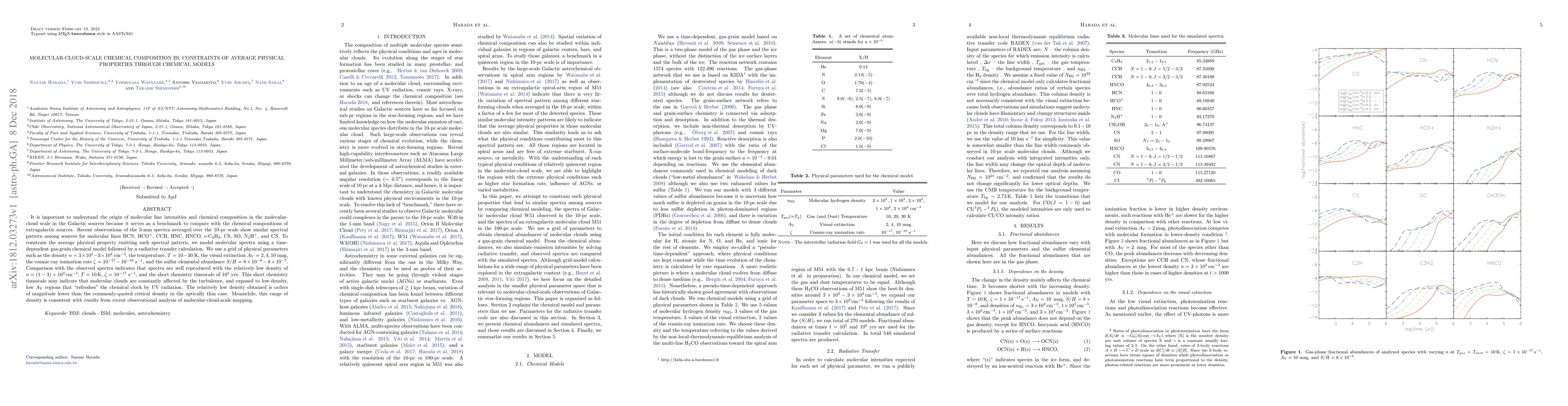 This paper models molecular spectra to understand the chemical composition and physical properties of molecular clouds on a 10-pc scale. The study finds that the observed spectral patterns are best reproduced with a low density of 1-3 x 10^3 cm^-3, a temperature of 10 K, and a short chemistry timescale of 10^5 years, suggesting constant turbulence and UV radiation influence.