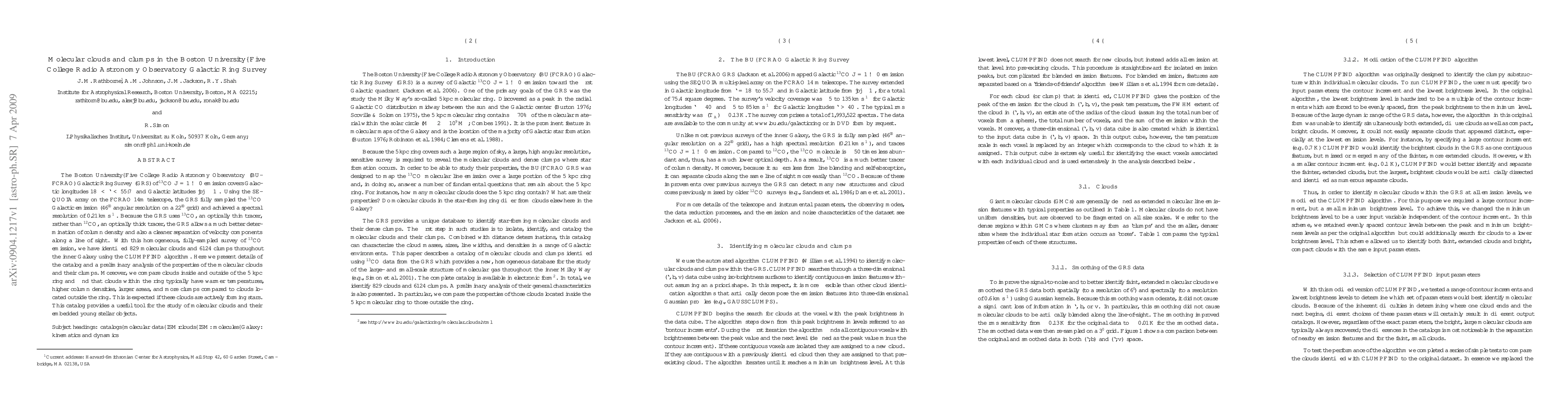 The BU-FCRAO Galactic Ring Survey identifies 829 molecular clouds and 6124 clumps using 13 CO emission, revealing that clouds within the 5 kpc ring have warmer temperatures, higher column densities, larger areas, and more clumps compared to those outside the ring, suggesting active star formation. This catalog aids in studying the properties of molecular clouds and their embedded young stellar objects.
