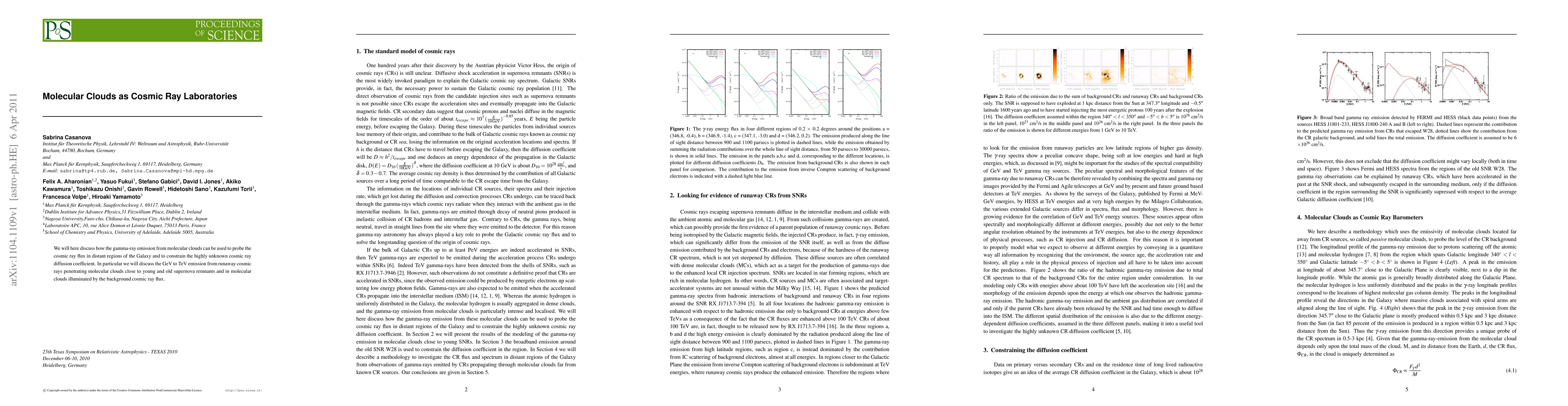 This paper explores the use of gamma-ray emissions from molecular clouds to investigate the cosmic ray flux in distant galactic regions and to estimate the cosmic ray diffusion coefficient. It focuses on GeV to TeV emissions from cosmic rays interacting with molecular clouds near supernova remnants and those influenced by background cosmic ray flux.