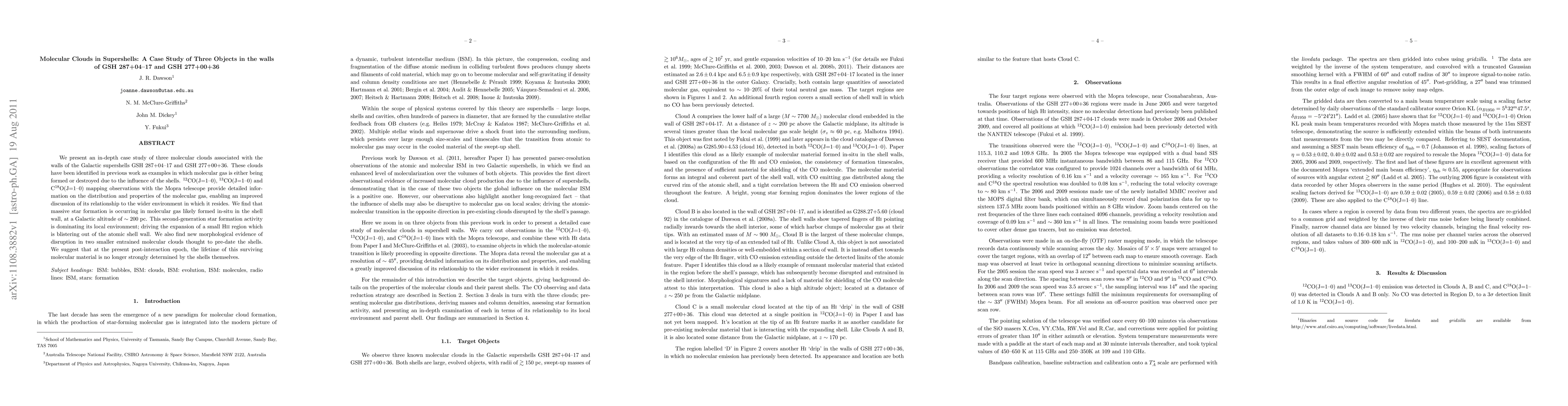 We present an in-depth case study of three molecular clouds associated with the walls of the Galactic supershells GSH 287+04-17 and GSH 277+00+36. These clouds have been identified in previous work as examples in which molecular gas is either being formed or destroyed due to the influence of the shells. 12CO(J=1-0), 13CO(J=1-0) and C18O(J=1-0) mapping observations with the Mopra telescope provide detailed information on the distribution and properties of the molecular gas, enabling an improved discussion of its relationship to the wider environment in which it resides. We find that massive star formation is occurring in molecular gas likely formed in-situ in the shell wall, at a Galactic altitude of ~200 pc. This second-generation star formation activity is dominating its local environment; driving the expansion of a small HII region which is blistering out of the atomic shell wall. We also find new morphological evidence of disruption in two smaller entrained molecular clouds thought to pre-date the shells. We suggest that at the present post-interaction epoch, the lifetime of this surviving molecular material is no longer strongly determined by the shells themselves.