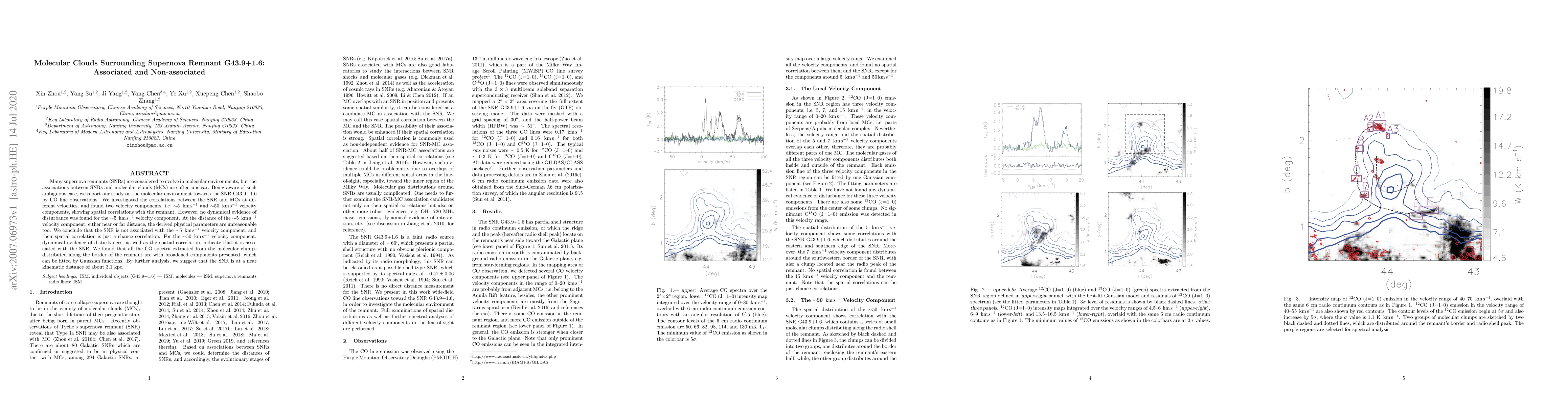 A study found that a supernova remnant (SNR) G43.9+1.6 is associated with a molecular cloud at 50 km/s velocity component, but not the slower component, suggesting it is interacting with the cloud.