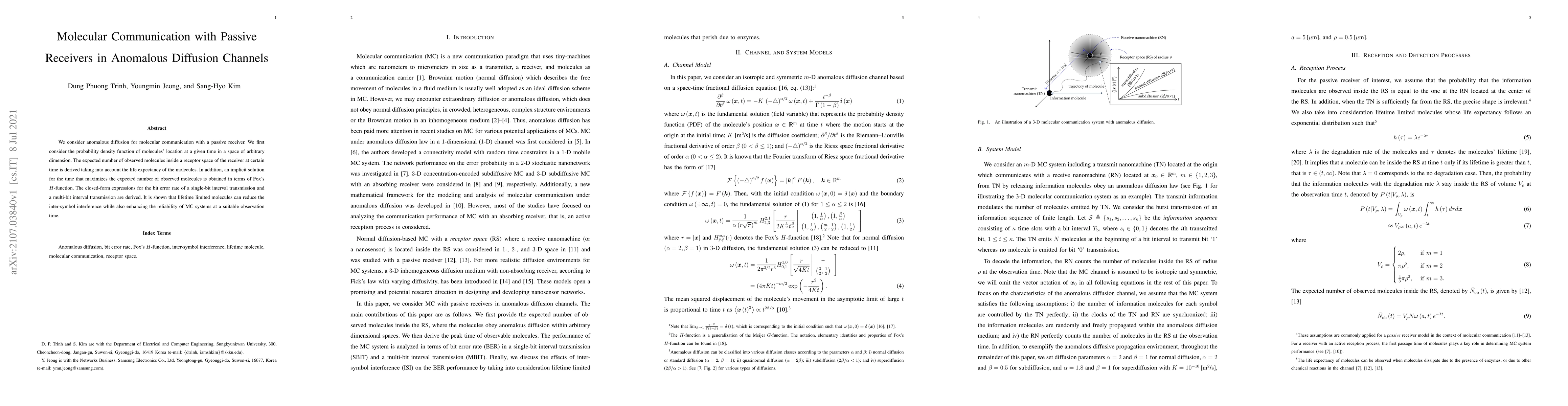 This research derives the expected number of observed molecules in a passive receiver via anomalous diffusion, considering molecule lifetimes. It provides a time-optimal solution using Fox's H-function and calculates bit error rates for single-bit and multi-bit transmissions, showing that lifetime-limited molecules can improve molecular communication system reliability and reduce interference.