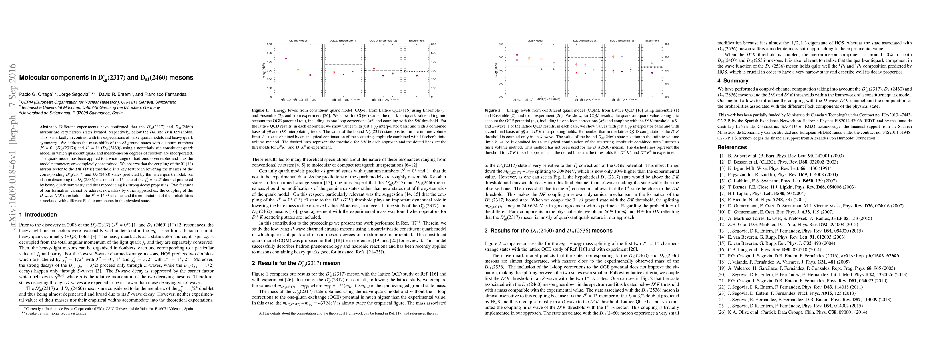 This paper explores the mass shifts of $D_{s0}^{\ast}(2317)$ and $D_{s1}(2460)$ mesons using a nonrelativistic constituent quark model, revealing that their low masses are due to their coupling to $DK$ and $D^{\ast}K$ thresholds. The study also highlights the model's ability to describe the $D_{s1}(2536)$ meson and its decay properties, emphasizing the unique coupling of the $D$-wave $D^{\ast}K$ threshold and the computation of Fock components.