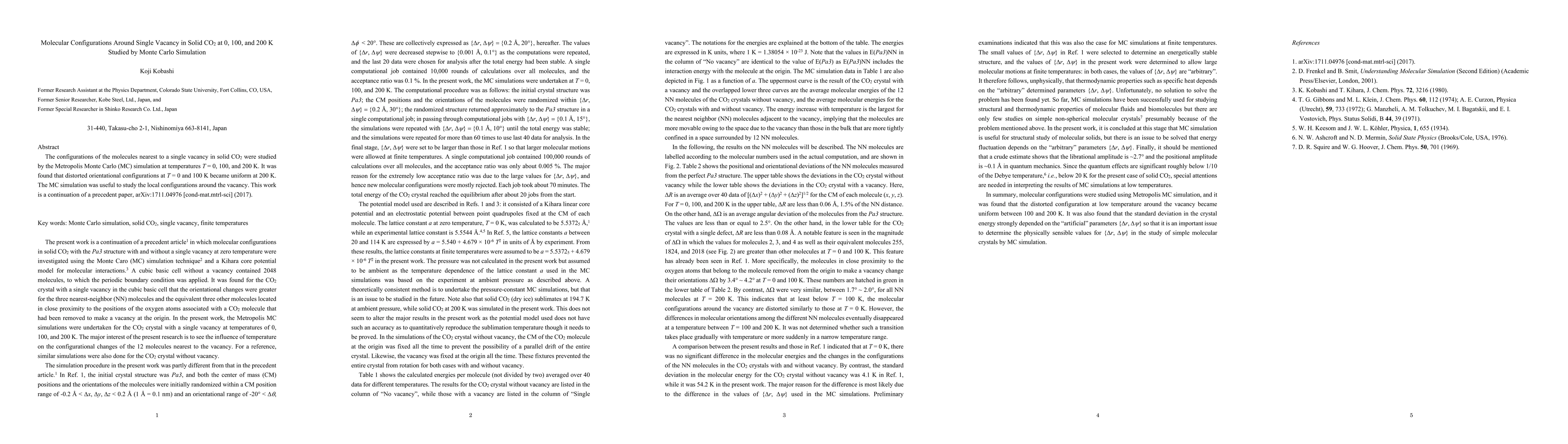 The configurations of the molecules nearest to a single vacancy in solid CO2 were studied by the Metropolis Monte Carlo (MC) simulation at temperatures T = 0, 100, and 200 K. It was found that distorted orientational configurations at T = 0 and 100 K became uniform at 200 K. The MC simulation was useful to study the local configurations around the vacancy. This work is a continuation of a precedent paper, arXiv:1711.04976 [cond-mat.mtrl-sci] (2017).