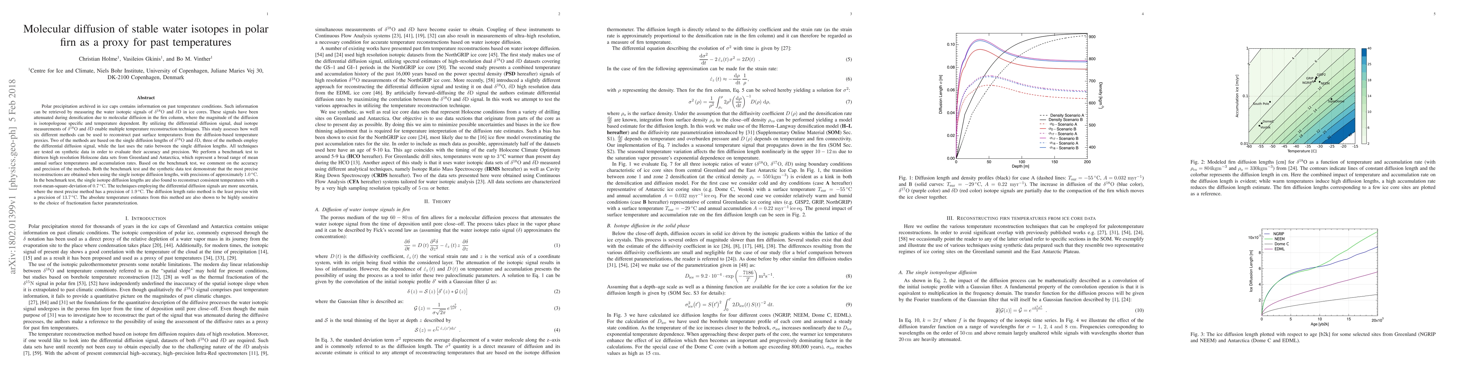 This paper investigates the use of stable water isotopes in polar firn to reconstruct past temperatures, assessing six temperature reconstruction methods based on isotopic diffusion. The most precise reconstructions, with an accuracy of approximately $1.0\,^\mathrm{o}\mathrm{C}$, are achieved using single isotope diffusion lengths.