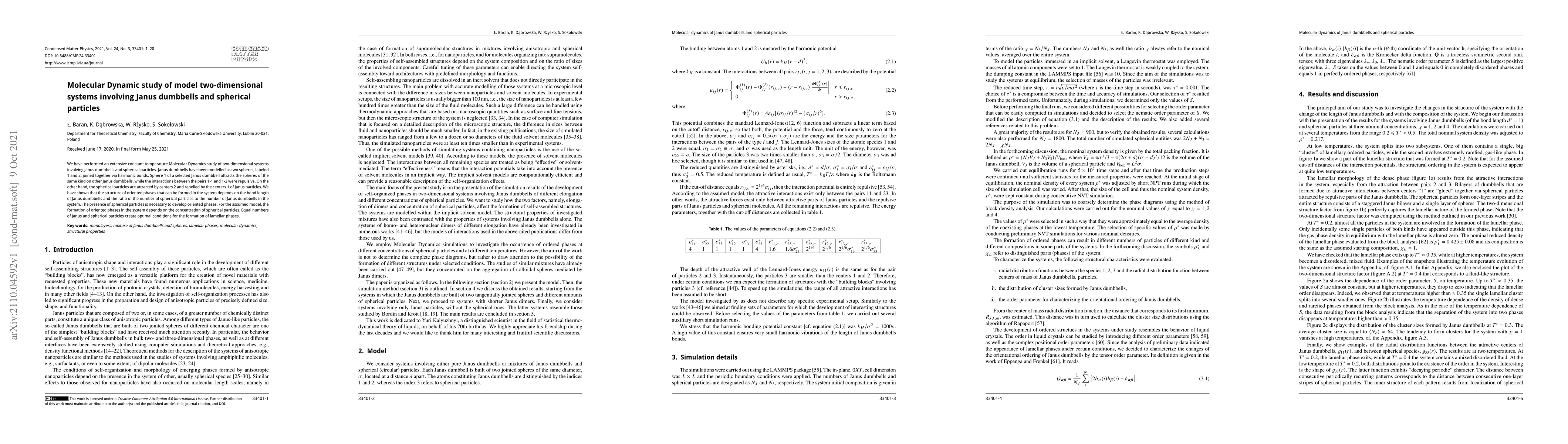 This study investigates the structural phases of two-dimensional systems using Molecular Dynamics simulations, focusing on Janus dumbbells and spherical particles. The formation of oriented phases depends on the bond length of Janus dumbbells and the concentration of spherical particles, with optimal lamellar phase formation occurring at equal numbers of Janus and spherical particles.