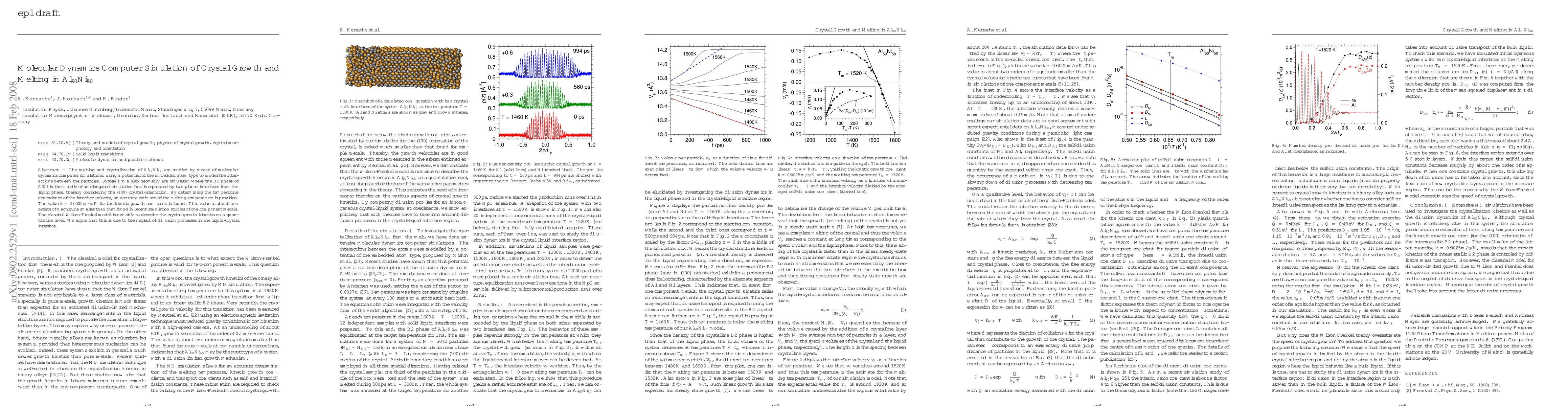 Researchers used molecular dynamics computer simulations to study the melting and crystallization of Al50Ni50, finding a lower kinetic growth coefficient than previous studies, with implications for understanding crystal growth kinetics.