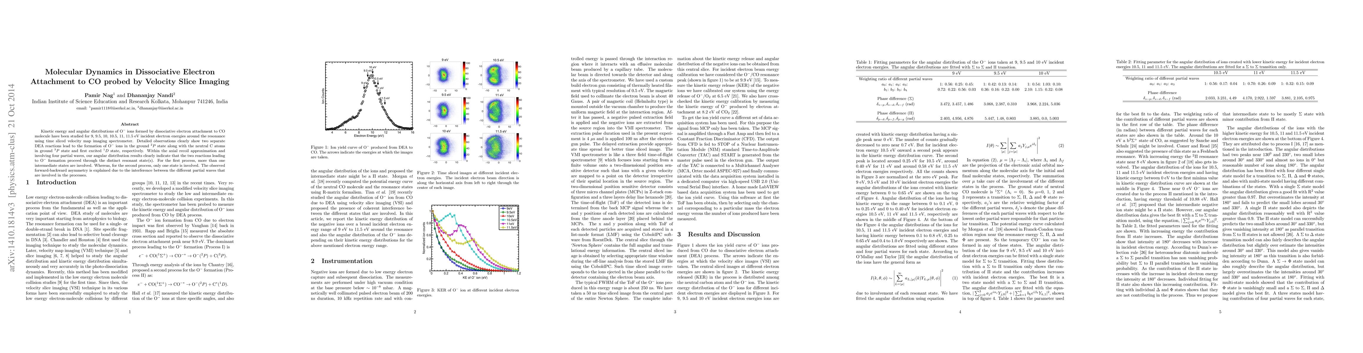 Researchers used a time-sliced velocity map imaging spectrometer to study electron attachment to CO molecules at various energies, revealing two separate dissociative electron attachment reactions leading to different O$^{-}$ ion states.