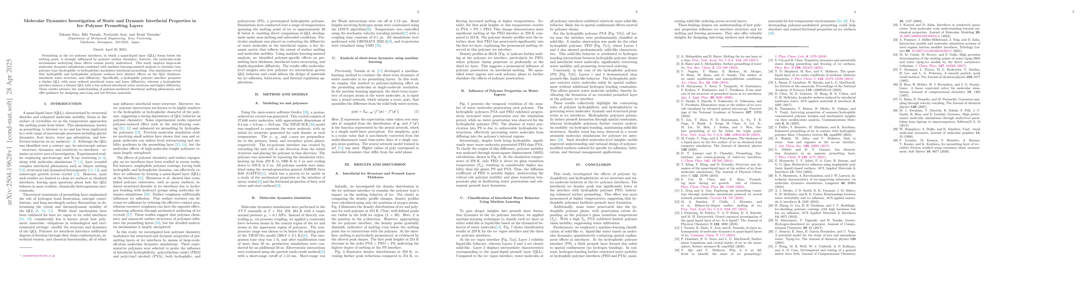 The study presents a detailed molecular-scale analysis of interfacial premelting, elucidating the effects of polymer surface chemistry on QLL thickness, interfacial water structure, and diffusivity.