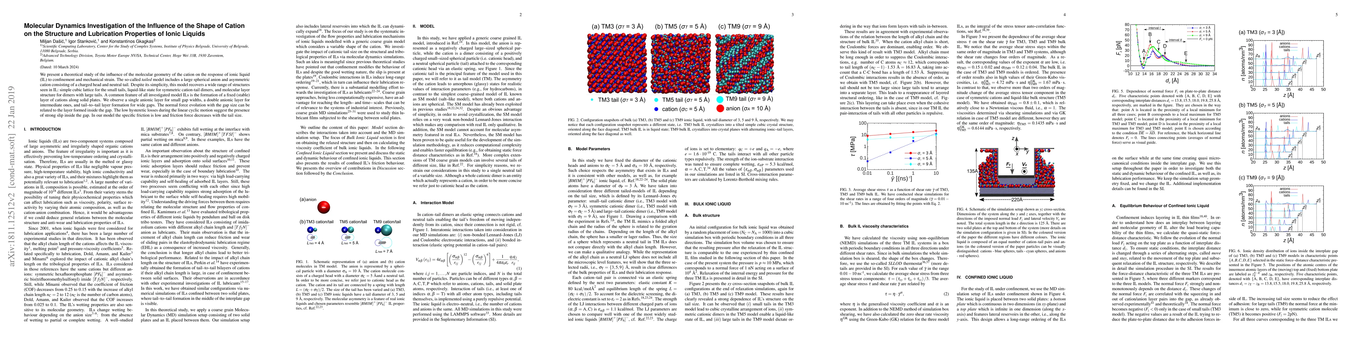 A study investigates how cation shape affects ionic liquid structure and lubrication properties under confinement and mechanical strain.