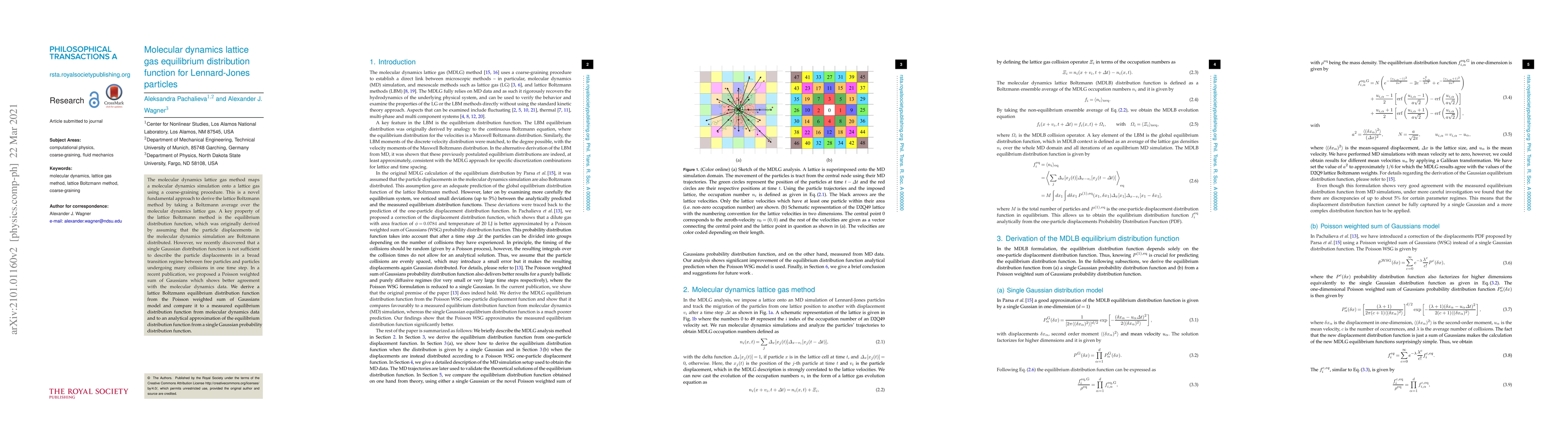 This paper proposes a Poisson weighted sum of Gaussians to derive a lattice Boltzmann equilibrium distribution function, improving upon the single Gaussian model for particle displacements in a molecular dynamics lattice gas. The new equilibrium distribution function is compared against molecular dynamics data and an analytical approximation.