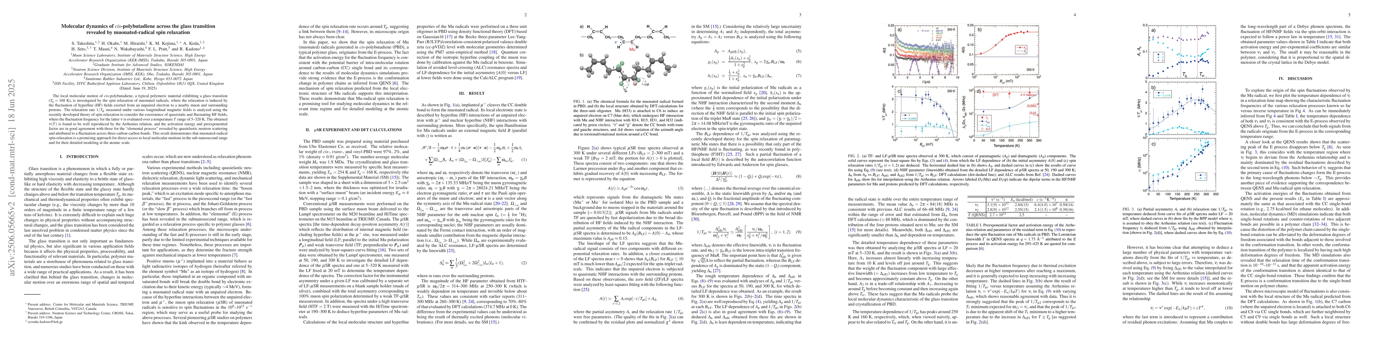 Researchers used muonated-radical spin relaxation to study local molecular motion in $cis$-polybutadiene at the glass transition temperature, revealing a fluctuation across three CC bonds.