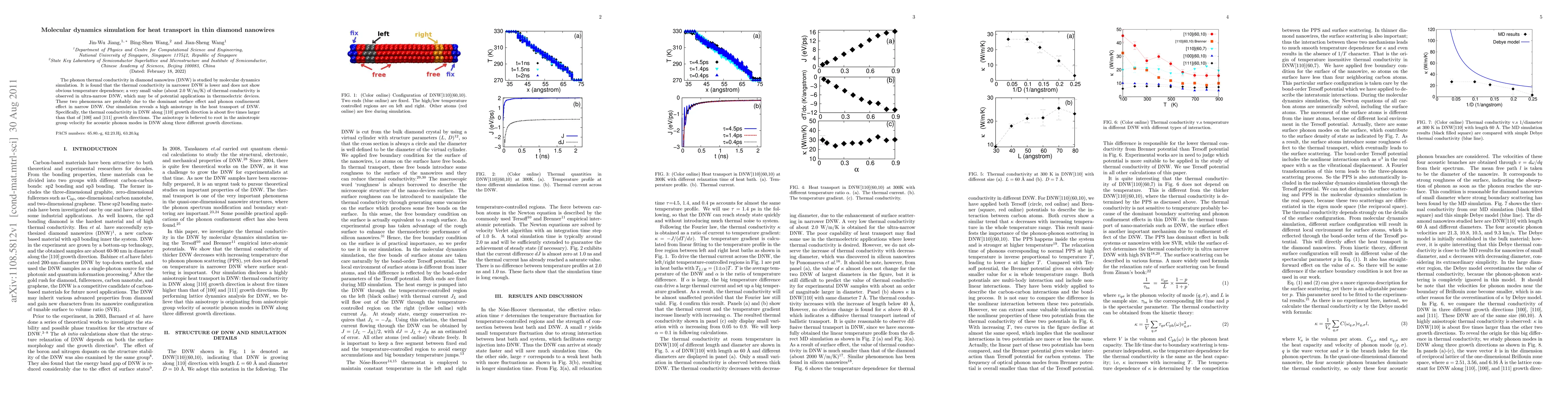 Researchers studied heat transport in thin diamond nanowires using molecular dynamics simulation, finding that narrower wires have lower thermal conductivity with potential applications in thermoelectric devices.