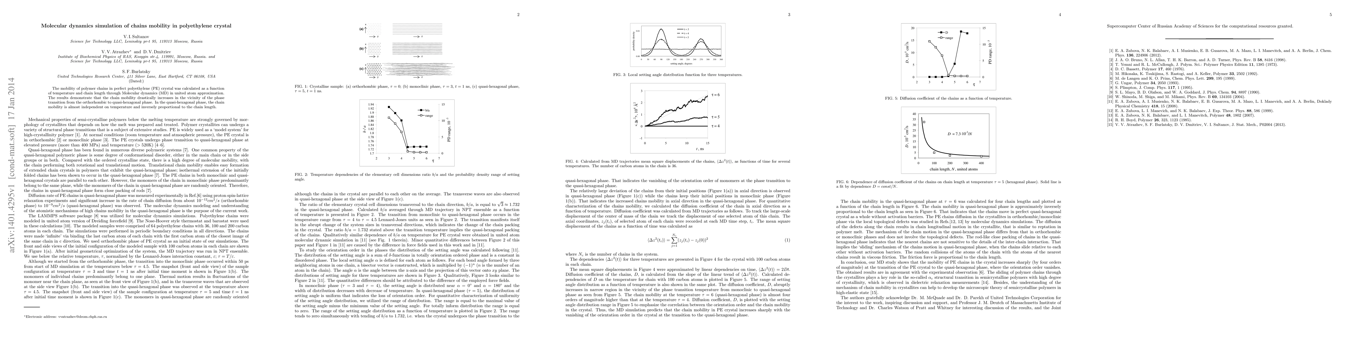 Molecular dynamics simulations reveal that polyethylene chain mobility surges near phase transition from orthorhombic to quasi-hexagonal. In quasi-hexagonal phase, mobility remains largely unaffected by temperature but decreases with chain length.