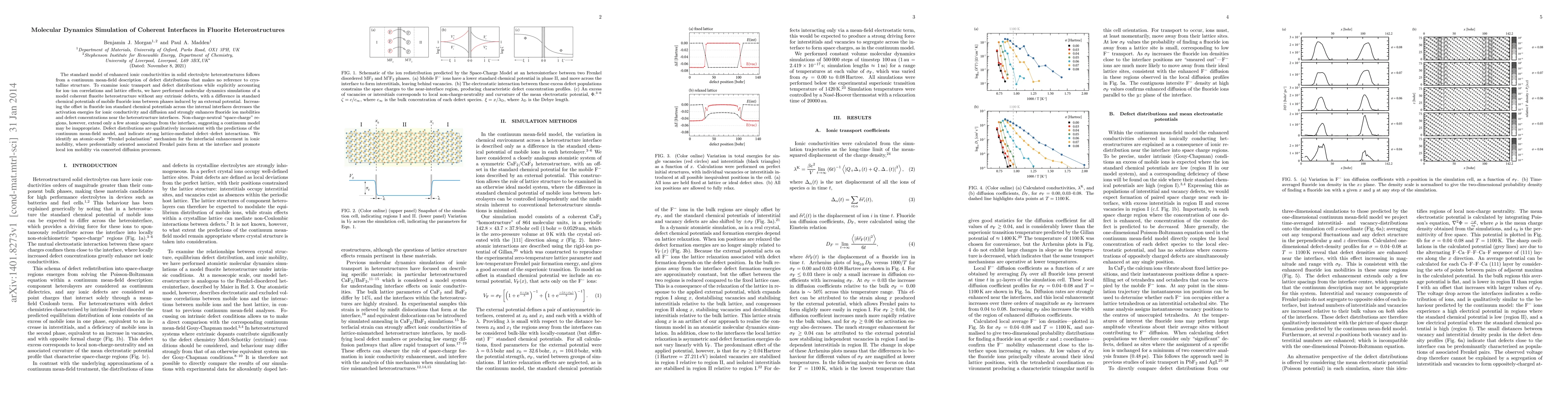 This study uses molecular dynamics simulations to investigate ionic transport in coherent fluorite heterostructures, finding that ion mobility is enhanced near interfaces due to a Frenkel polarisation mechanism. The results challenge the standard continuum mean-field model, highlighting lattice-mediated defect-defect interactions and short-range space-charge regions.