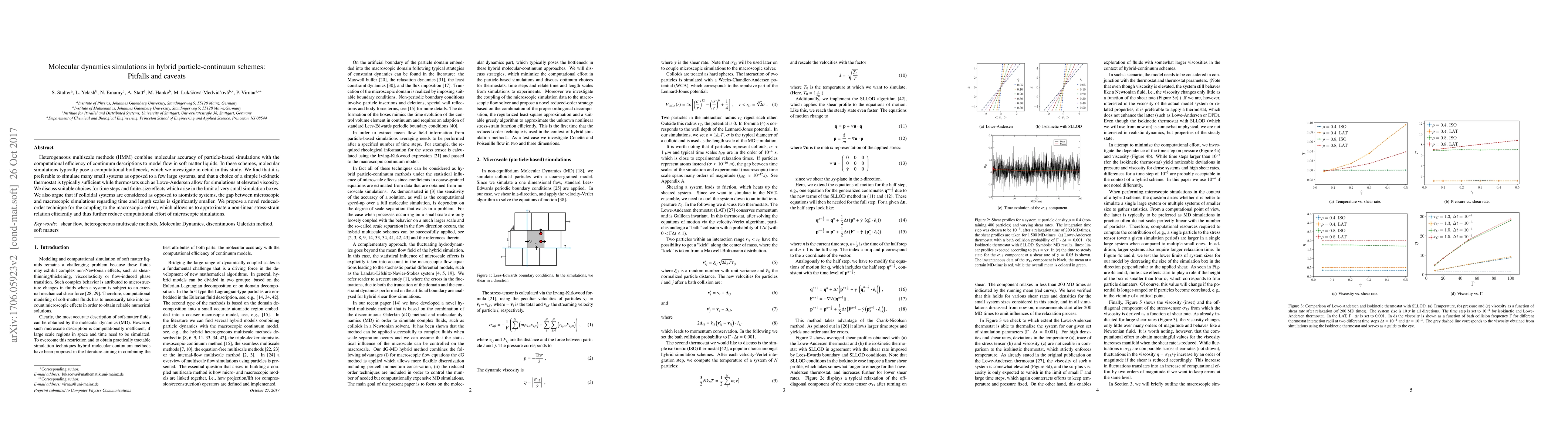 Heterogeneous multiscale methods (HMM) combine molecular accuracy of particle-based simulations with the computational efficiency of continuum descriptions to model flow in soft matter liquids. In these schemes, molecular simulations typically pose a computational bottleneck, which we investigate in detail in this study. We find that it is preferable to simulate many small systems as opposed to a few large systems, and that a choice of a simple isokinetic thermostat is typically sufficient while thermostats such as Lowe-Andersen allow for simulations at elevated viscosity. We discuss suitable choices for time steps and finite-size effects which arise in the limit of very small simulation boxes. We also argue that if colloidal systems are considered as opposed to atomistic systems, the gap between microscopic and macroscopic simulations regarding time and length scales is significantly smaller. We also propose a novel reduced-order technique for the coupling to the macroscopic solver, which allows us to approximate a non-linear stress-strain relation efficiently and thus further reduce computational effort of microscopic simulations.