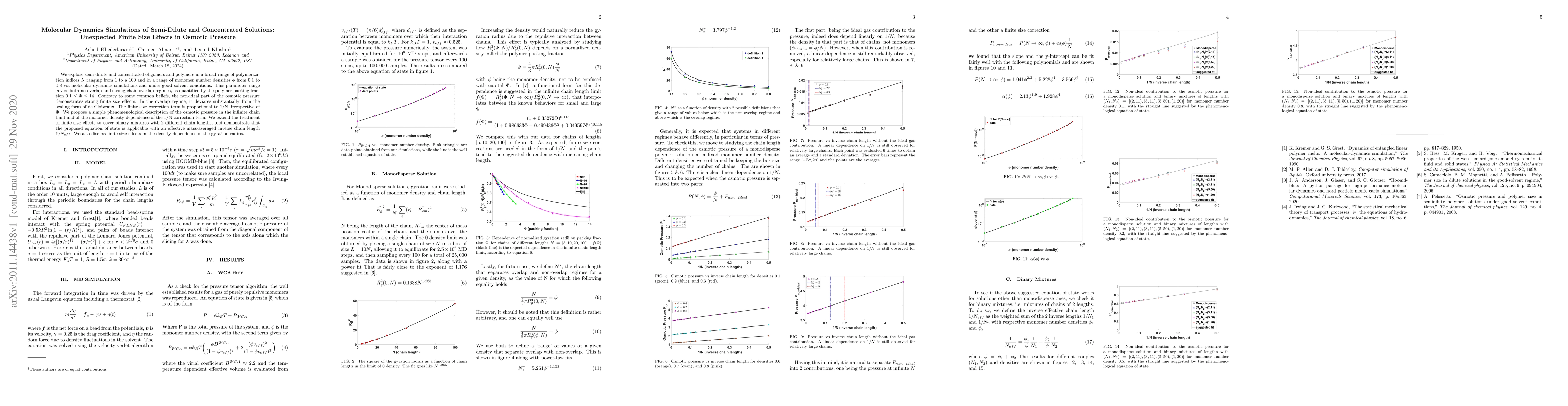 This paper investigates the unexpected finite size effects in the osmotic pressure of semi-dilute and concentrated polymer solutions through molecular dynamics simulations, revealing deviations from de Cloizeaux scaling in the overlap regime. The study proposes a phenomenological model for the osmotic pressure and extends the analysis to binary mixtures, showing applicability with an effective inverse chain length.