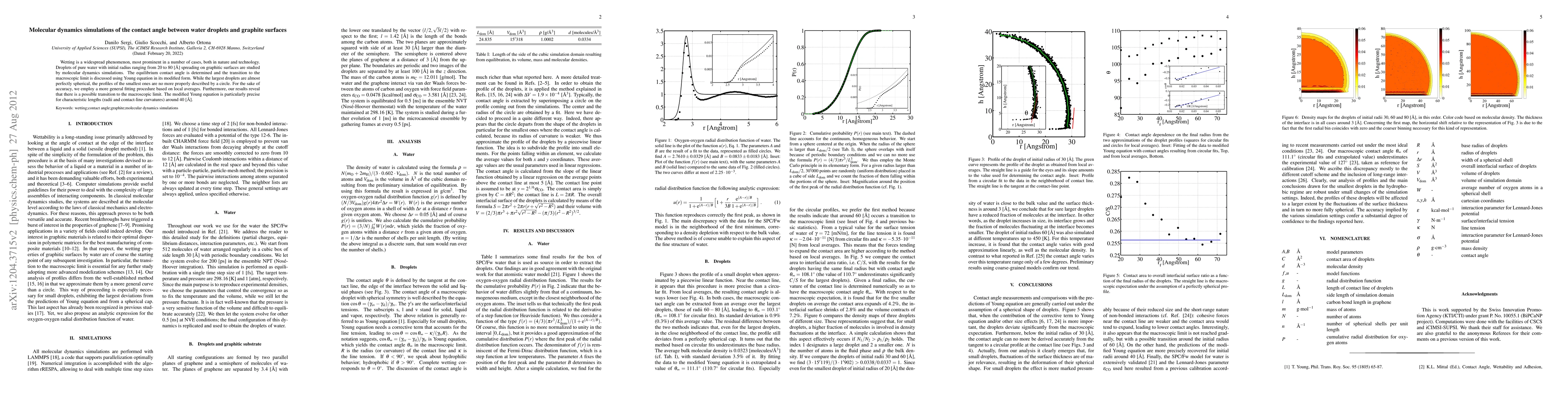 Researchers used molecular dynamics simulations to study how small water droplets spread on graphite surfaces, finding that some droplets deviate from a perfect sphere shape, and the modified Young equation is most precise at certain characteristic lengths.