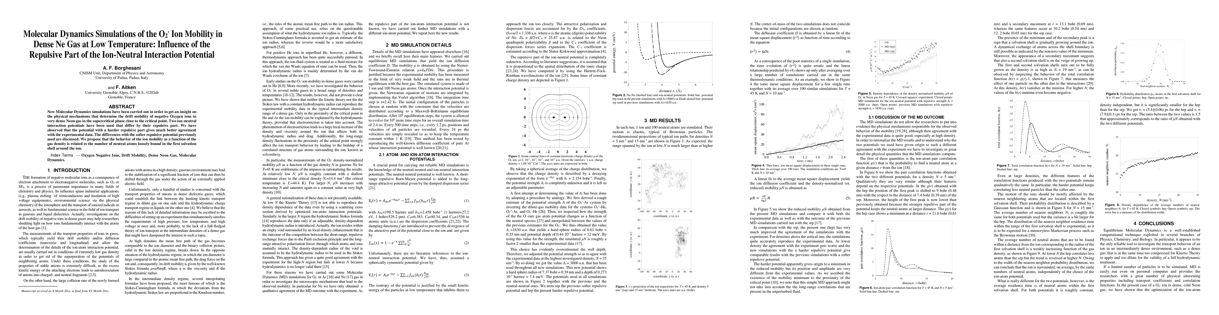 New Molecular Dynamics simulations have been carried out in order to get an insight on the physical mechanisms that determine the drift mobility of negative Oxygen ions in very dense Neon gas in the supercritical phase close to the critical point. Two ion-neutral interaction potentials have been used that differ by their repulsive part. We have observed that the potential with a harder repulsive part gives much better agreement with the experimental data. The differences with the softer repulsive potential previously used are discussed. We propose that the behavior of the ion mobility as a function of the gas density is related to the number of neutral atoms loosely bound in the first solvation shell around the ion.