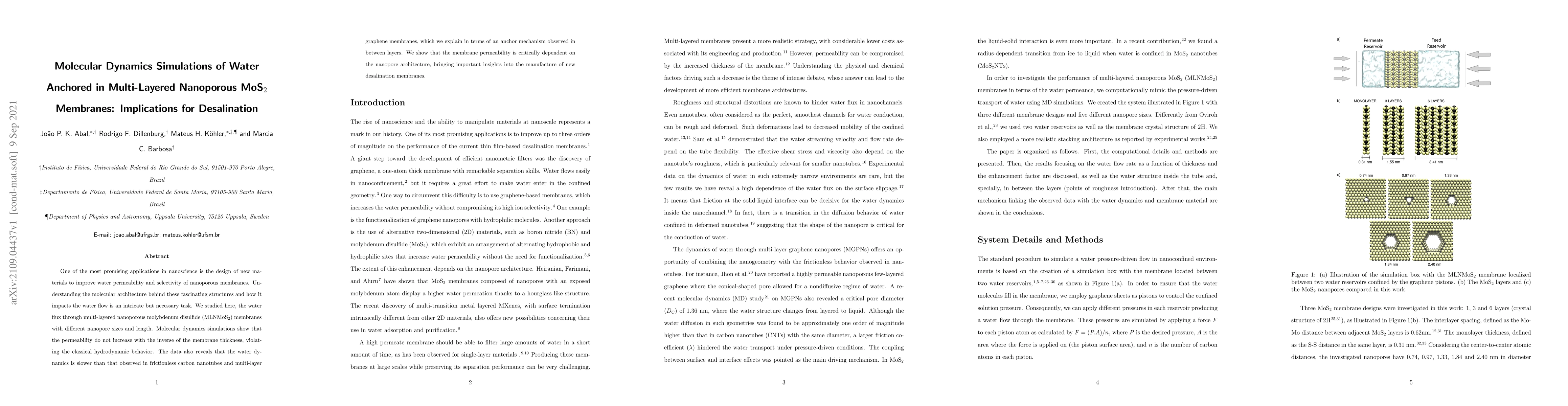 This study provides important insights into the transport properties of water in MoS2 nanosheets, which is crucial for the development of efficient water desalination technologies.