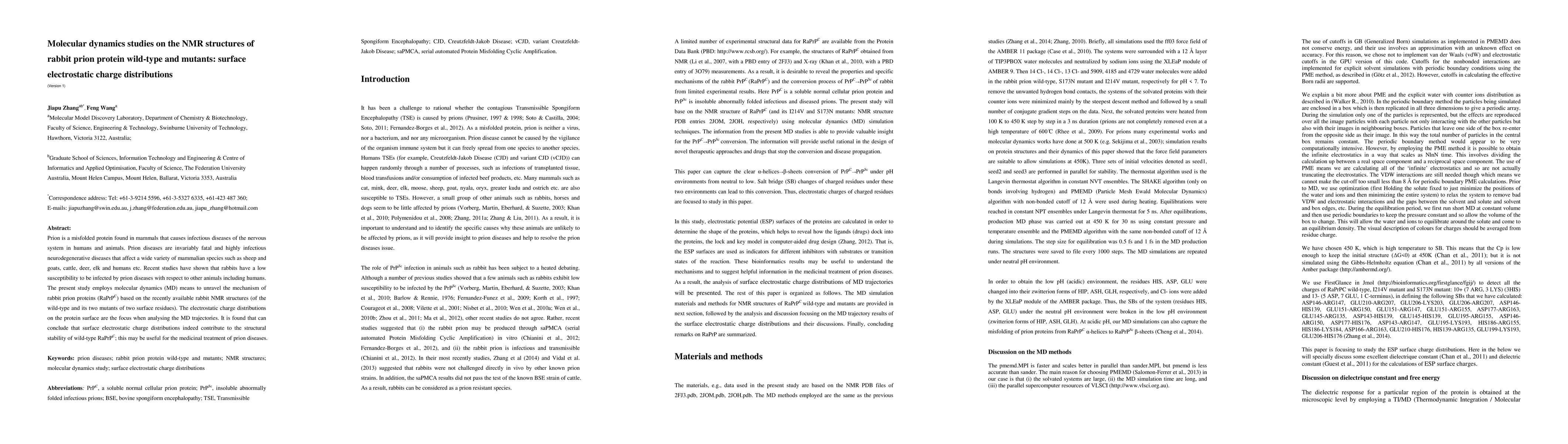 Researchers used molecular dynamics to study how rabbit prion protein's surface charge affects its stability, finding that charge distributions may contribute to the protein's structural stability, offering potential for medicinal treatment of prion diseases.
