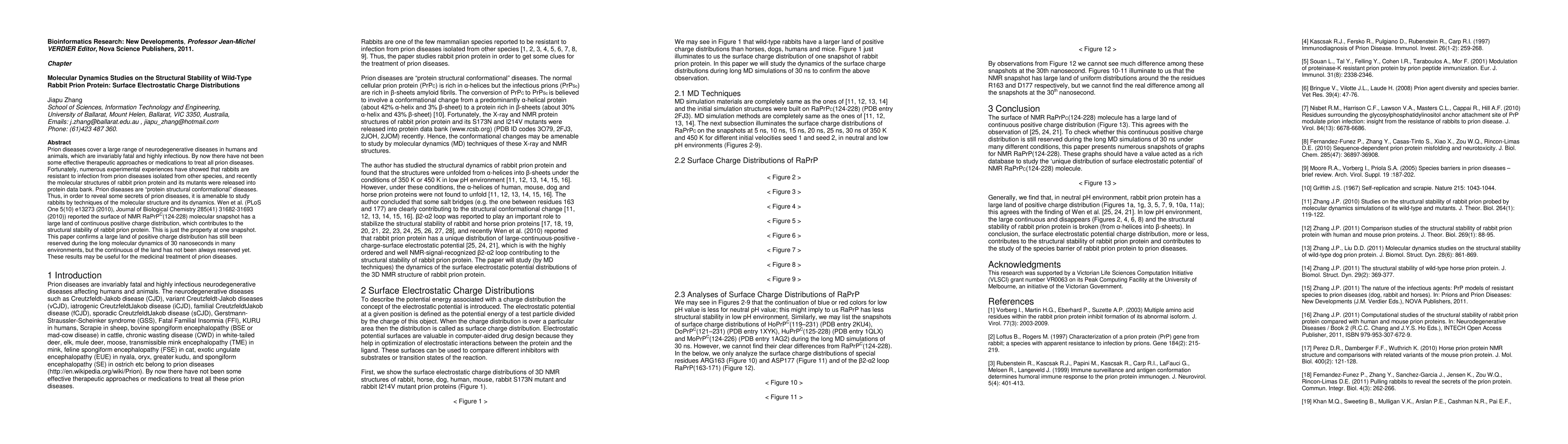 This paper investigates the structural stability of wild-type rabbit prion protein through molecular dynamics simulations, confirming the persistence of a large positive charge distribution over 30 nanoseconds, though its continuity varies. These findings may aid in the development of treatments for prion diseases.