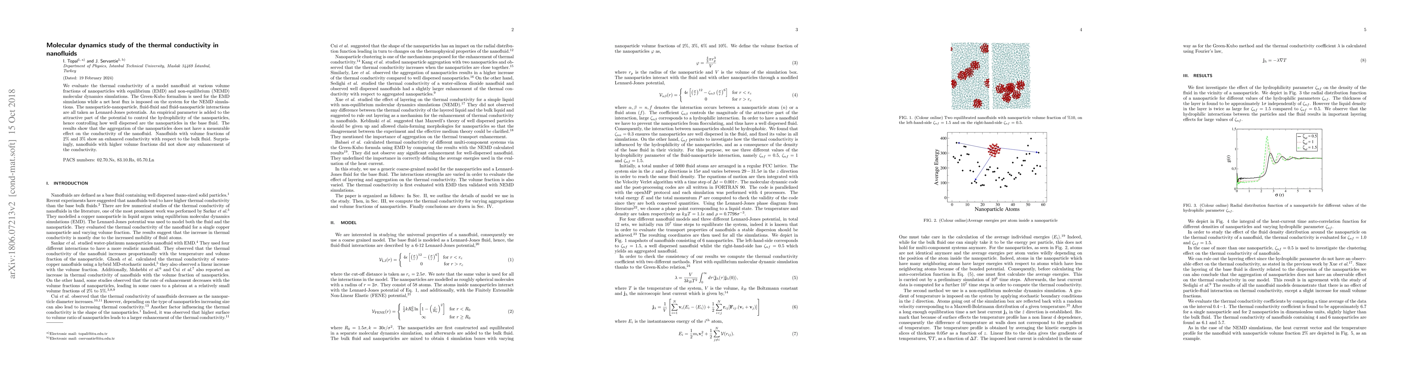 This study uses molecular dynamics simulations to evaluate the thermal conductivity of nanofluids at varying nanoparticle volume fractions, finding that nanofluids with 2% and 3% nanoparticles exhibit enhanced conductivity compared to the base fluid, while higher volume fractions do not show such enhancement, and nanoparticle aggregation does not significantly affect conductivity.